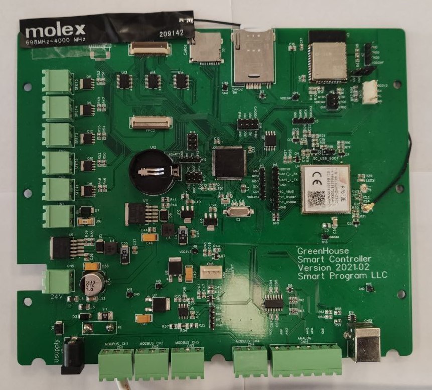 Плата контроллера предназначена для создания систем автоматизации различного назначения. В основе платы 32х-битный микроконтроллер STM32F407/STM32F427 и Wi-Fi контролер ESP32. Плата содержит модуль сотовой связи GSM/LTE 2G/4G.