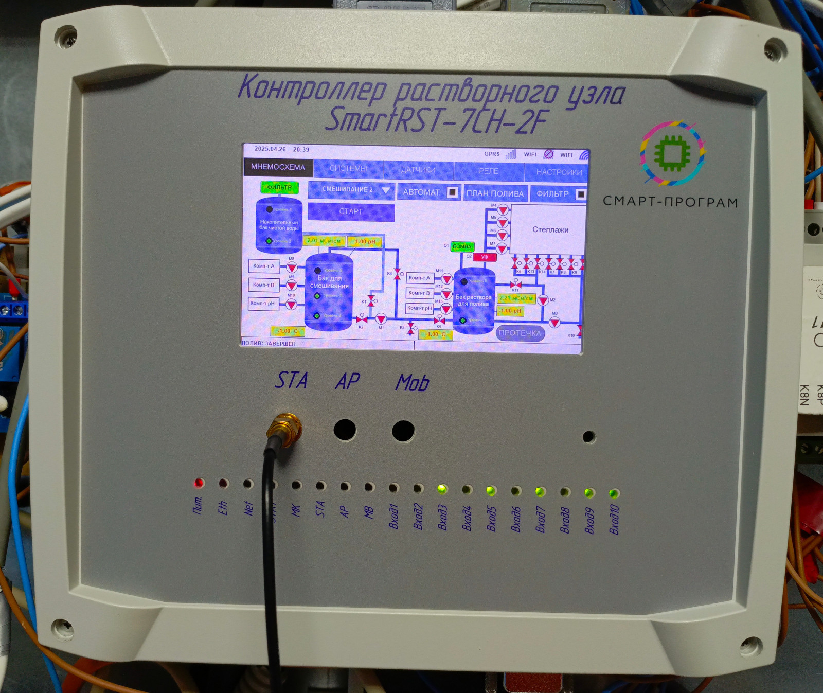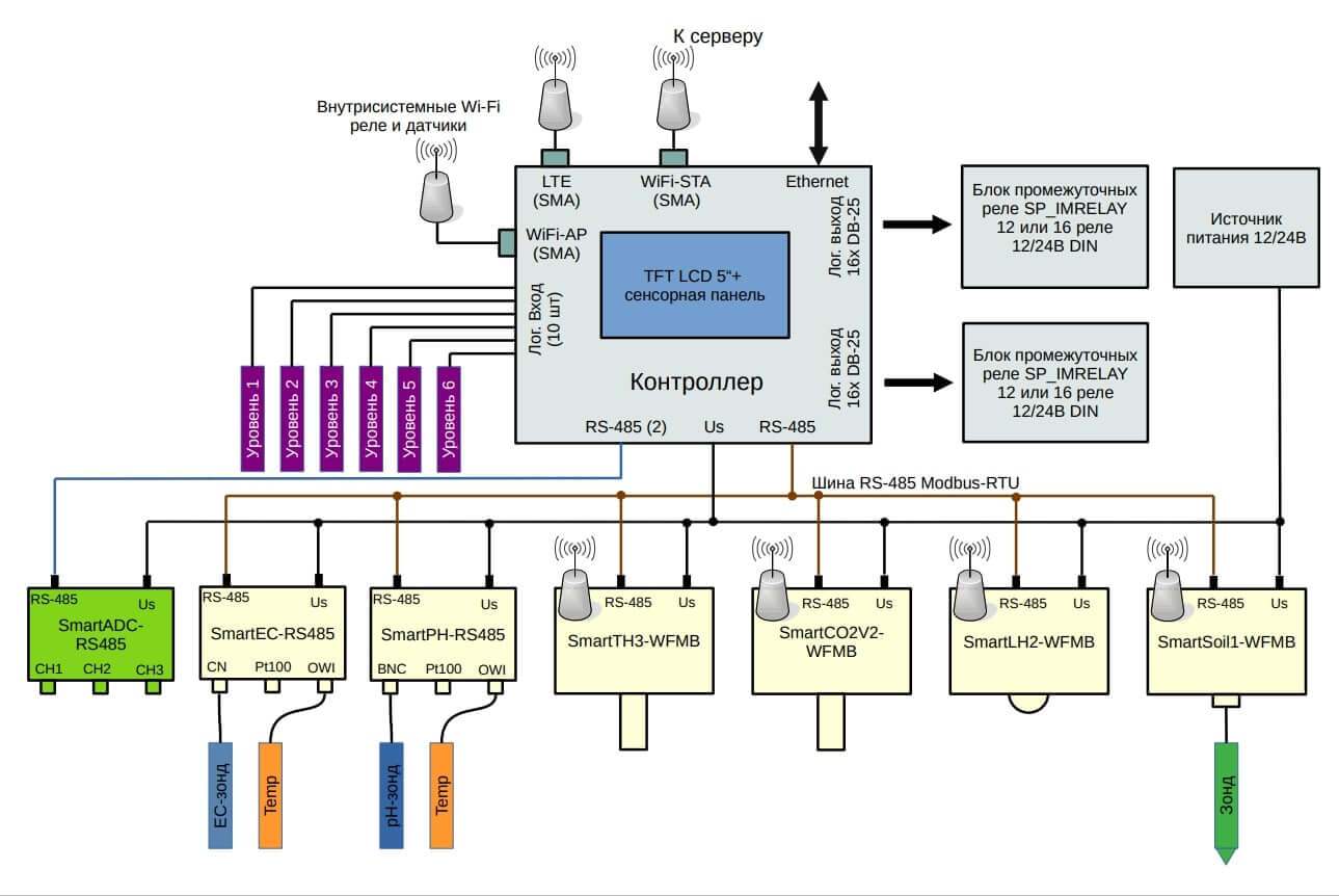 Система предназначена для полной автоматизации полива и подготовки раствора гидропонной фермы, в том числе: